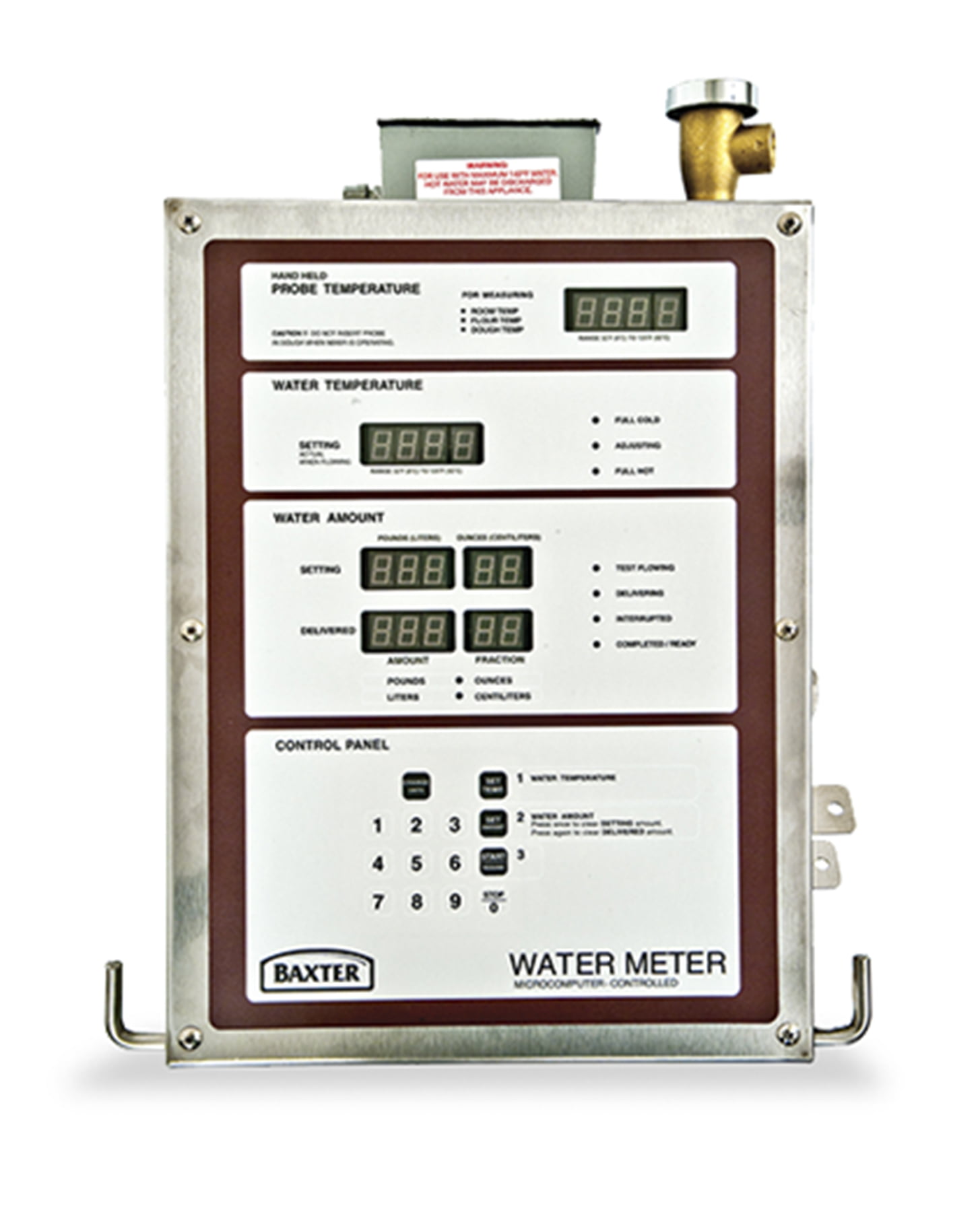 In every aspect of baking, the more you can control all the factors that influence your product, the better the final result. The Baxter Water Meter offers highly precise control of water temperature within ±1°C and volume within a tolerance of ±1%. This precision ensures the Baxter Water Meter will deliver a specific amount of water at a specific temperature to help achieve the exact dough consistency you require.