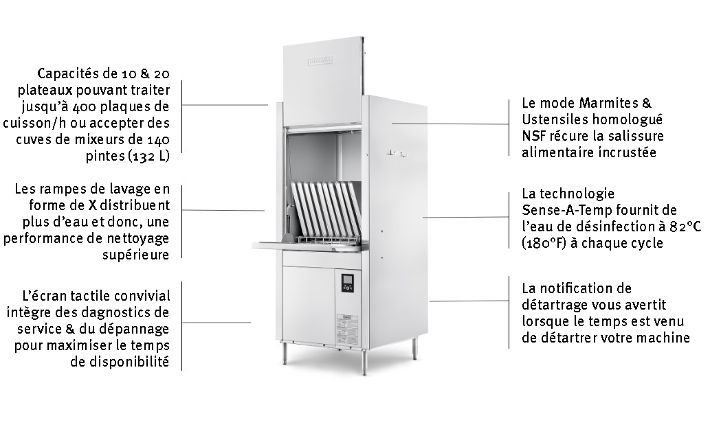 Une performance de lavage inégalée vous offre la légendaire Propreté Hobart en retirant plus de résidus alimentaires tenaces pour économiser du temps sur le pré-trempage et le pré-récurage des ustensiles.