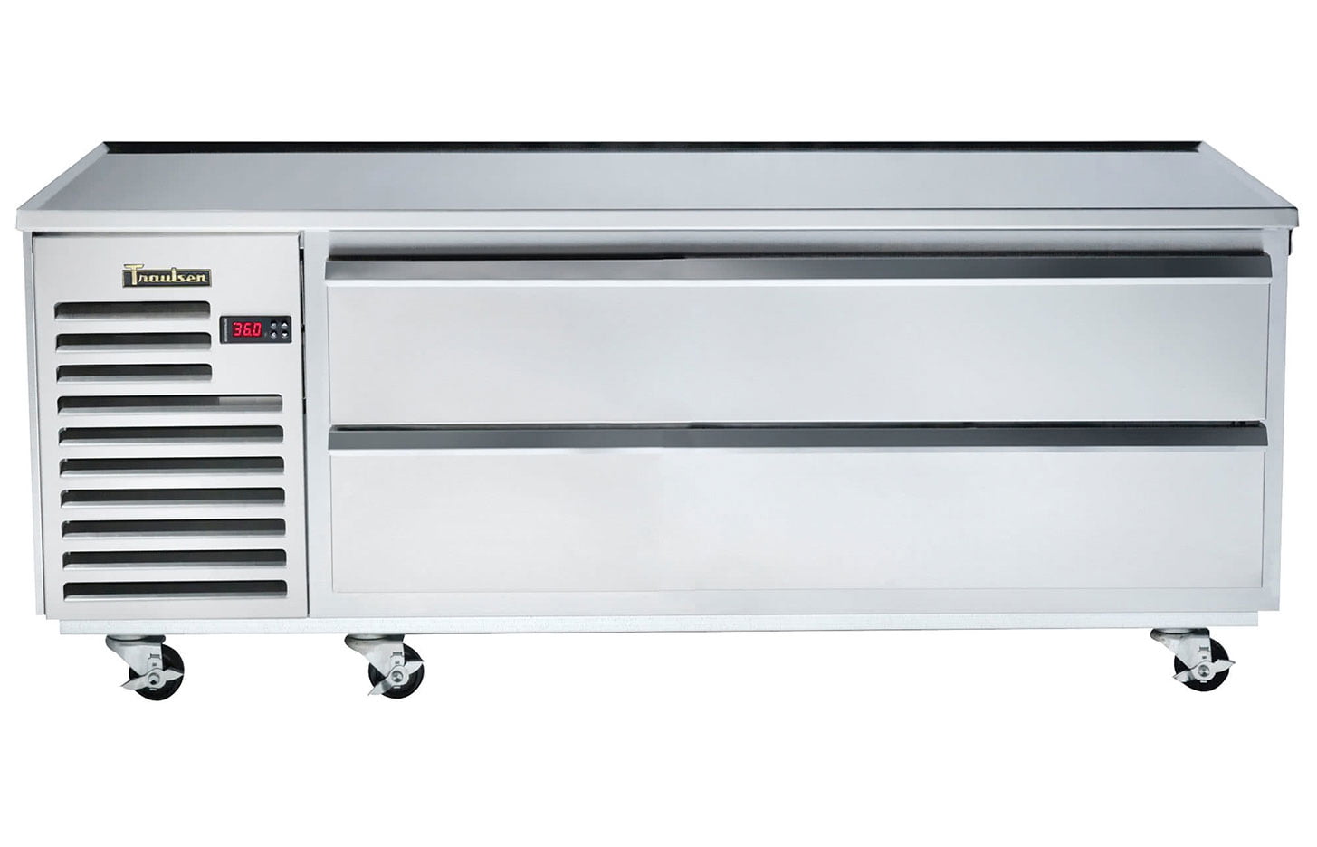 Ces performances sont rendues possibles grâce aux évaporateurs situés dans le mur arrière — même si les températures de la cuisine atteignent 40,5°C avec un point de rosée de 30°C, les évaporateurs multiples continuent à faire circuler l’air à travers les sections de tiroir. En fait, des tests ont démontré que même si un tiroir était laissé ouvert pendant une bonne minute dans ces conditions, le comptoir réfrigéré maintenait une température de égale à 3,8°C.